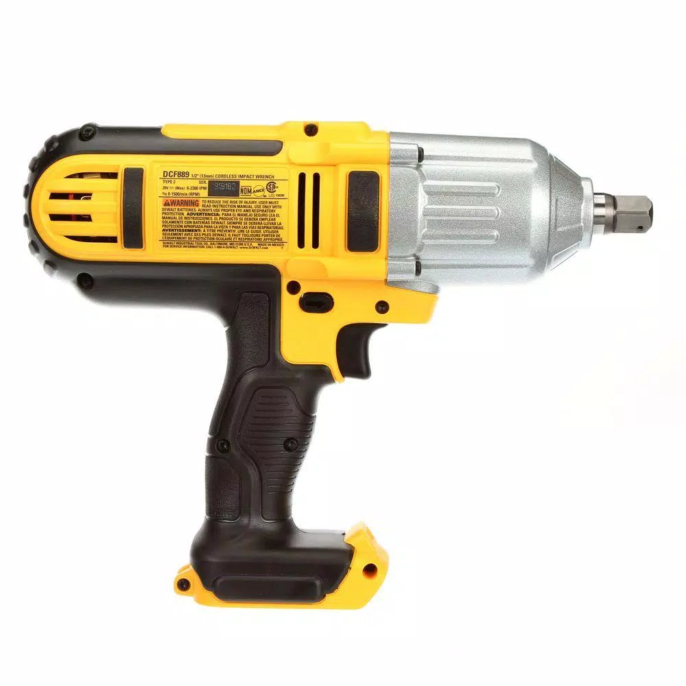 The DEWALT 20-Volt Max Lithium-Ion 1/2 in. High Torque Impact Wrench with Detent Pin (Tool-Only) is designed for mechanical contractors, plumbers, automotive mechanics, maintenance and repair professionals and remodelers who demand a tool for difficult fastening applications, such as driving and removing fasteners or nuts and bolts in wood, metal and concrete. Powerful with 400 ft. lbs. of torque, this impact wrench also has a variable speed trigger with an electric brake for added control and delivers 1500 RPM and 2300 IPM. Comfortable to use and easy to control with its ergonomic handle, this impact wrench is also strong and reliable for long-lasting use on the jobsite or for DIY projects around your home.