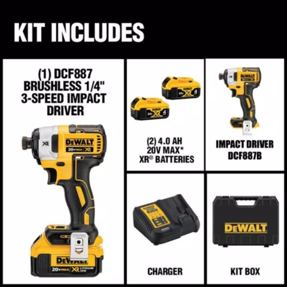 - Includes: (1) 20-Volt 1/2 in. impact wrench, (1) 20-Volt lithium-ion charger, (2) 20-Volt compact lithium-ion batteries (4 Ah) and (1) carrying case, (1) impact driver