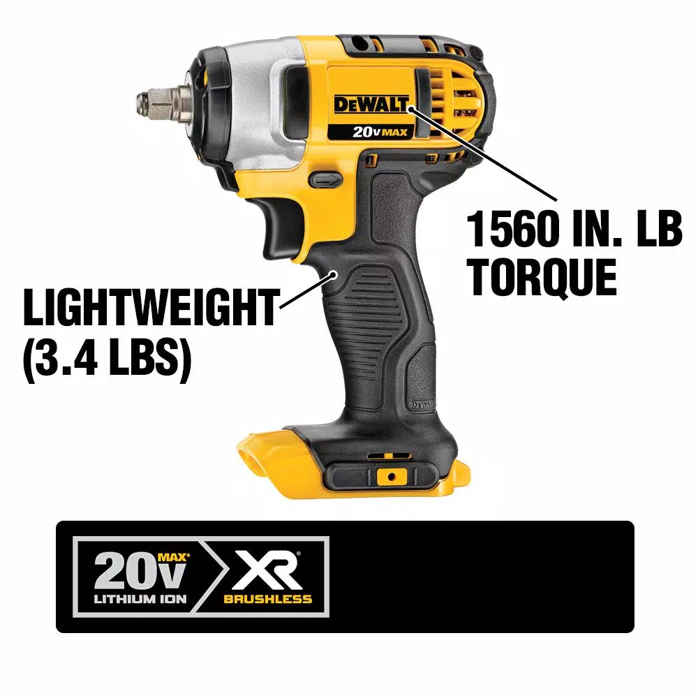 The DEWALT 20-Volt Max Lithium-Ion 3/8 in. Impact Wrench with Hog Ring (Tool-Only) has a compact and lightweight design that gives mechanical contractors, plumbers, automotive mechanics, maintenance professionals and remodelers an ergonomic fastening solution that can fit into tight spaces. Providing 1560 in. lbs. of torque and 2700 impacts per minute (IPM), the frameless motor provides fast application speeds for tackling a wide variety of fastening applications. This tool includes 3 LED lights with a 20-second delay for visibility without shadows, a fuel gauge indicator that illuminates when the battery needs to be recharged and a hog ring anvil for easy impact socket changes. Durable and strong with a magnesium gear case, all-metal transmission and a heavy-duty impact mechanism which directs torque to the fastener without added kickback, this tool delivers reliable and long-lasting performance to get the results you demand. For a limited time get a bonus 20-Volt MAX 5.0Ah Lithium-Ion Battery and Charger Kit with purchase.