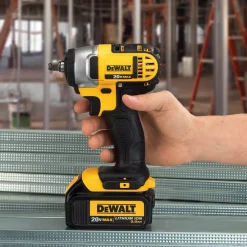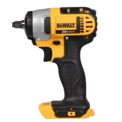 The DEWALT 20-Volt Max Lithium-Ion 3/8 in. Impact Wrench with Hog Ring (Tool-Only) has a compact and lightweight design that gives mechanical contractors, plumbers, automotive mechanics, maintenance professionals and remodelers an ergonomic fastening solution that can fit into tight spaces. Providing 1560 in. lbs. of torque and 2700 impacts per minute (IPM), the frameless motor provides fast application speeds for tackling a wide variety of fastening applications. This tool includes 3 LED lights with a 20-second delay for visibility without shadows, a fuel gauge indicator that illuminates when the battery needs to be recharged and a hog ring anvil for easy impact socket changes. Durable and strong with a magnesium gear case, all-metal transmission and a heavy-duty impact mechanism which directs torque to the fastener without added kickback, this tool delivers reliable and long-lasting performance to get the results you demand.
