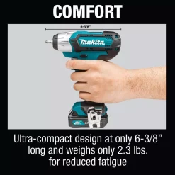- Ultra-compact design at only 6-3/8 in. long and weighs only 2.3 lbs. with battery for reduced operator fatigue