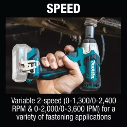 - Variable 2-speed (0-1,300/0-2,400 RPM and 0-2,000/0-3,600 IPM) for a wide range of fastening applications