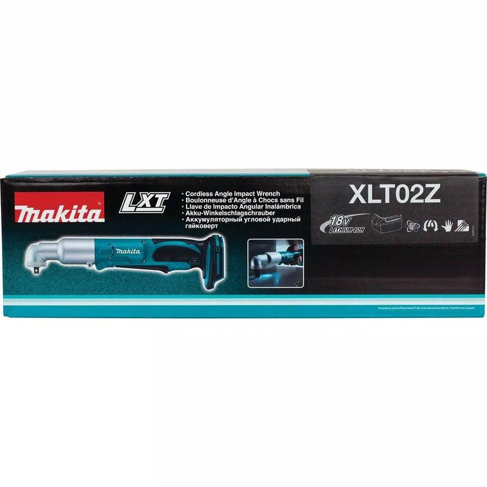 Makitaβs 18-Volt LXT Lithium-Ion Cordless 3/8 in. Angle Impact Wrench (XLT02Z, tool-only) delivers cordless impact power into tough to reach spaces. The versatile XLT02Z packs plenty of torque for a wide range of fastening and loosening tasks, yet it weighs just 3.9 lbs. (with battery, sold separately) with a slim design and over 1 ft. of tool extension. The 3/8 in. square drive will fit impact-rated socket sets, making the XLT02Z ideal for auto repair and product assembly. Itβs part of Makitaβs expanding 18-Volt Lithium-Ion series, the worldβs largest cordless tool line-up powered by an 18-Volt Lithium-Ion slide-style battery. Makita 18-Volt Lithium-Ion batteries have the fastest charge times in their categories, so they spend more time working and less time sitting on the charger. For improved tool performance and extended battery life, Makita created Star Protection Computer Controls. Star Protection is communication technology that allows the Star Protection-equipped tool and battery to exchange data in real time and monitor conditions during use to protect against overloading, over-discharging and overheating. For increased versatility, the tool can also be powered by Makita 18-Volt LXT and Compact Lithium-Ion batteries with the star symbol on the battery indicating Star Protection inside.