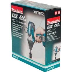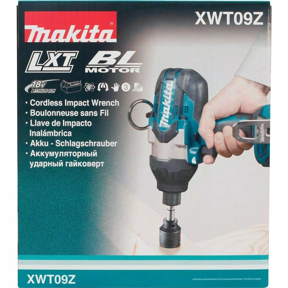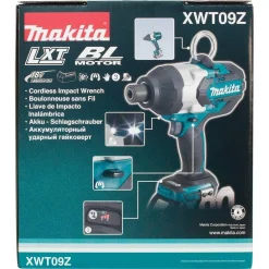 The Makita 18-Volt LXT Lithium-Ion Brushless Cordless High Torque 7/16 in. Hex Chuck Impact Wrench (XWT09Z, tool only) combines 590 ft. lbs. fastening torque with extended run time and speed control for unmatched fastening performance. It features an efficient Makita brushless motor for longer run time, increased power and speed, and longer tool life. The electronic 3-speed power selection switch gives users more precise fastening control. With the 7/16 in. hex chuck and hanging ring, it is ideal for linemen and electricians for installation and maintenance of power lines, wood boring, and more. Itโs part of Makitaโs expanding 18-Volt Lithium-Ion series, the worldโs largest cordless tool line-up powered by an 18-Volt Lithium-Ion slide-style battery. Makita 18-Volt Lithium-Ion batteries have the fastest charge times in their categories, so they spend more time working and less time sitting on the charger. For improved tool performance and extended battery life, Makita created Star Protection Computer Controls. Star Protection is communication technology that allows the Star Protection-equipped tool and battery to exchange data in real time and monitor conditions during use to protect against overloading, over-discharging and overheating. For increased versatility, the tool can also be powered by Makita 18-Volt LXT and Compact Lithium-Ion batteries with the star symbol on the battery indicating Star Protection inside.