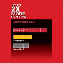 - REDLITHIUM 2.0 battery technology: superior pack construction, electronics and performance deliver more work per charge and more work over pack life than any battery on the market