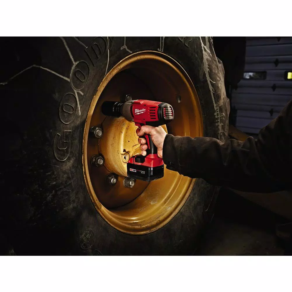 Engineered for heavy use, the M18TM in. High-Torque Impact Wrench delivers maximum cordless power on the jobsite. With a Milwaukee 4-pole motor and powerful impact mechanism, this cordless impact wrench delivers a reliable 525 ft./lbs. of torque with maximum runtime. The REDLITHIUM Extended Capacity Battery Pack (sold separately) delivers more work per charge and more work over pack life than the competitors, as well as best-in-class performance in extreme jobsite conditions. Youβll get consistent speed control between 0 RPM to 1900 RPM and 0-2200 IPM with the variable-speed trigger. A 3/4 in. anvil with friction ring allows quick and easy 1-handed socket changes. The M18 Impact Wrenchβs onboard, real-time battery fuel gauge helps you monitor the charge precisely, so thereβs less downtime on the job. Lightweight and portable, with superior ergonomics, this 18-Volt cordless power tool offers ultimate comfort during prolonged use.