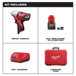 - Includes: 2767-20 M18 FUEL 1/2 in. high torque impact wrench with friction ring (bare tool), M18/M12 super charger and 8.0 Ah high output battery