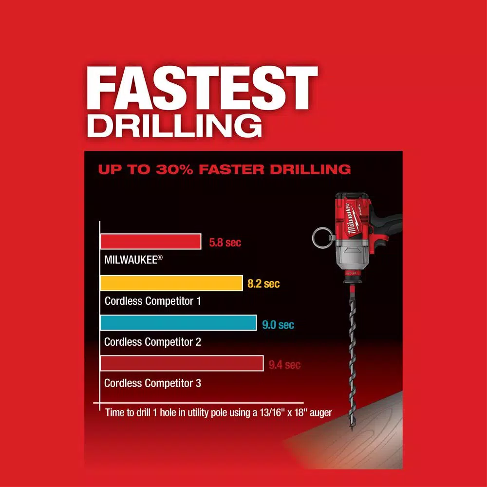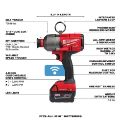 The Milwaukee M18 FUEL 7/16 in. Hex Utility High Torque Impact Wrench with ONE-KEY delivers the Fastest Drilling Speed, More Power and is Built for Maximum Control. The POWERSTATE Brushless Motor and all-new mechanism provide linemen with 30% faster drilling speeds, increasing their productivity while on the job. With up to 750 ft./lbs. maximum torque, this battery powered impact wrench gives users more power for effortless removal of rusted or corroded hardware. It is ergonomically designed for the lineman, providing users with superior control whether in-bucket, on-ground or climbing. The extended handle gives users increased grip surface, perfectly fitting high voltage safety gloves for improved comfort, less fatigue and balanced maneuverability. This is the first 7/16 in. H torque impact gun in the industry to be equipped with a QUIK-LOK chuck, uniquely providing faster and easier bit changes. Users can keep 1 hand firmly on the tools handle while inserting augers, sockets and other essential power utility accessories. The integrated lanyard loop enables users to easily transfer and store the tool. REDLINK PLUS Intelligence ensures maximum performance and protects the impact from overloads, heating and over-discharge. The REDLITHIUM Battery Pack (not included) is compatible with 175+ M18 tools.