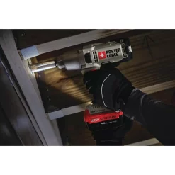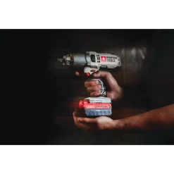 Our cordless impact wrench features a powerful motor that produces 330 ft.-lbs. of torque for heavy applications. It drives large fasteners quickly, with a full variable-speed trigger for precision control. The 1/2-in. hog ring allows for quick and easy socket changes. It also has a pro-grade Lithium Ion battery for long life and maximum performance. This impact driver is designed with a chemical resistant housing for automotive friendly settings. It also offers the user overmold grips for comfort during use.