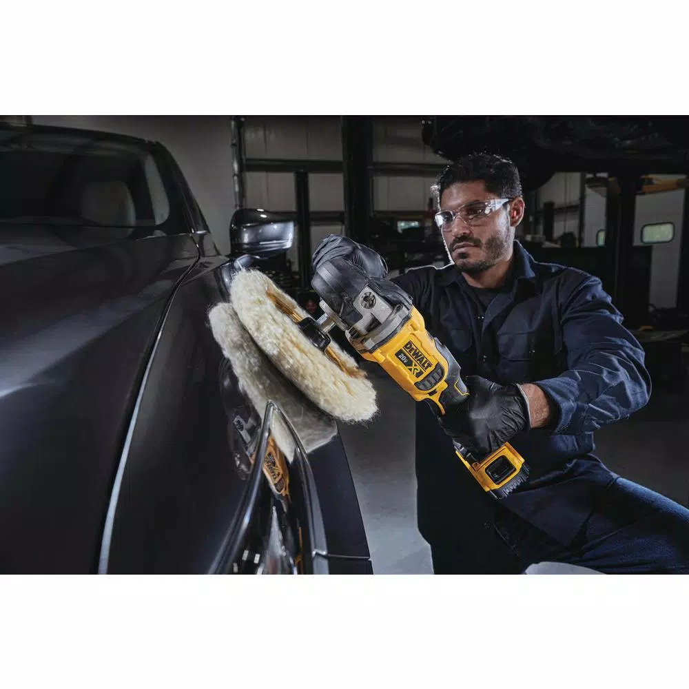 This 20-Volt MAX cordless kit includes a 7 in. Cordless Rotary Polisher, two 20-Volt MAX 5.0 Ah batteries, charger, and kit bag. The high-efficiency brushless motor delivers up to 75% more runtime over brushed. No-load speed of 800-2200 RPM with the variable-speed trigger and dial allows for application on cars, headlights, windshields, fiber glass, gelcoat, and for glass-polishing applications. The included 7 in. backing plate is recommended for most applications.
