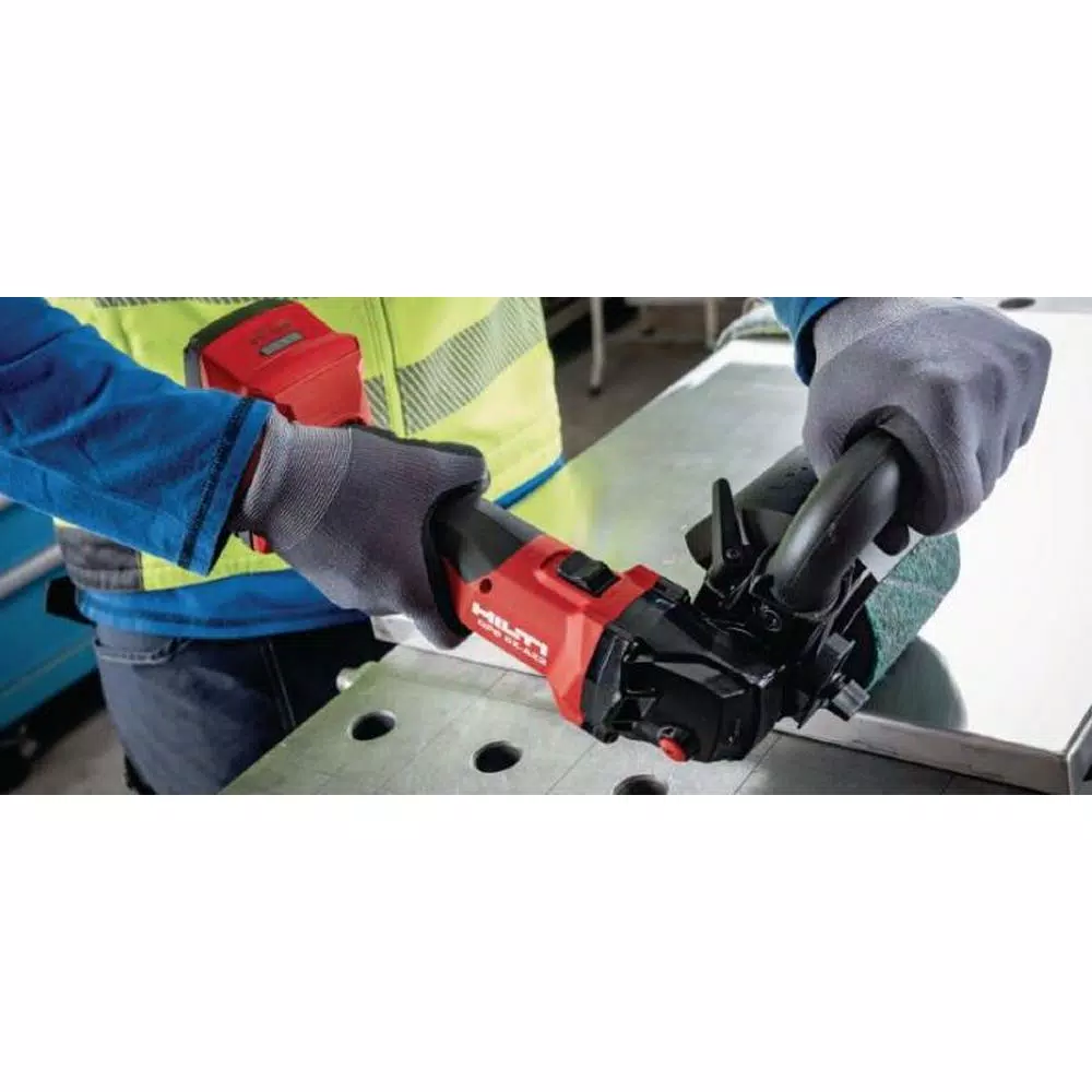 The new Hilti Cordless 22-Volt burnishing machine with electronic speed control can be used for grinding and finishing stainless/carbon steel, aluminum, copper, brass and titanium. Precise speed control from 1220 RPM to 2750 RPM β you can use higher speeds to remove material very quickly, while the lower speeds help you to craft a perfect polished finish on stainless steel. Upgraded ergonomics with lock-on switch β this cordless burnisher fits firmly in your grip, for more comfortable handling and precise control. Use for rough grinding β efficiently removing welding seams, burrs, rust, coatings or tarnish on larger metal surfaces.