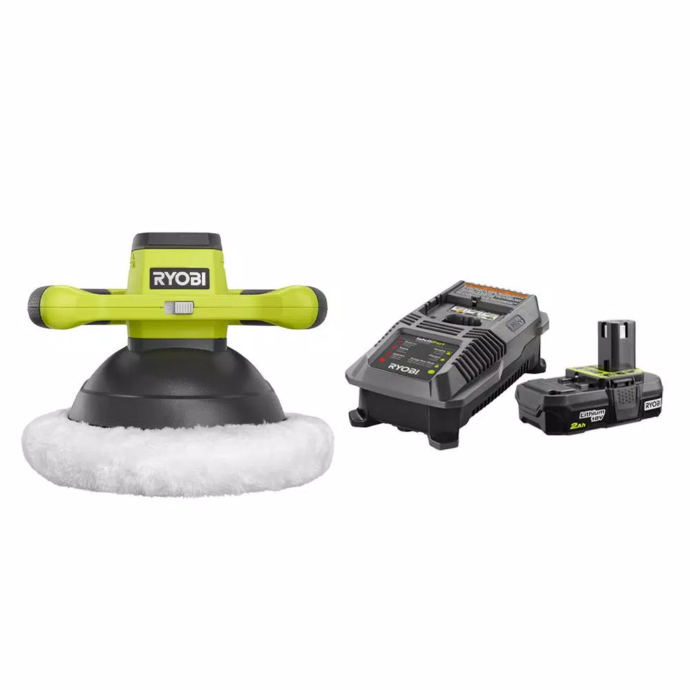 RYOBI introduces the 18-Volt ONE+ Cordless 10 in. Orbital Buffer with 2.0 Ah Battery and Charger Kit. This tool provides up to 2,500 RPMs for a swirl-free finish while offering the user cordless convenience. With a powerful motor, this buffer maintains optimum performance during extended use. The 18-Volt ONE+ 10 in. Orbital Buffer runs up to 1.5 hours with the 18-Volt ONE+ lithium-Ion 4.0 Ah LITHIUM+ High Capacity Battery (P108 Battery, sold separately). The battery in this kit features lithium-ion battery cells, providing the user with up to 1.5X more runtime compared to Ni-Cd counterparts. The battery is engineered to deliver fade-free power for maximum performance. The 18-Volt ONE+ Dual Chemistry IntelliPort Charger is compatible with all RYOBI ONE+ lithium-ion batteries and features IntelliPort Technology to maximize the lifetime of your RYOBI batteries. Best of all, it is part of the RYOBI ONE+ System of over 175 Cordless Tools that all work on the same battery platform. Backed by the RYOBI 3-Year Manufacturerโs Warranty, this kit includes the 10 in. Orbital Buffer, an elastic applicator bonnet, an elastic buffing bonnet, an 18-Volt ONE+ 2.0 Ah Compact Lithium-Ion Battery, a Dual Chemistry IntelliPort Technology Charger, and an operatorโs manual.