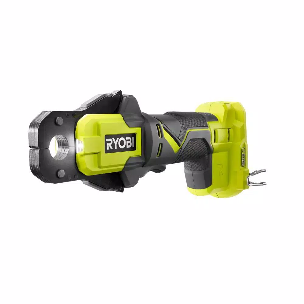 RYOBI introduces the 18-Volt ONE+ PEX Crimp Ring Press Tool with 2.0 Ah lithium-ion Battery and Dual Chemistry IntelliPort Charger. With 320 crimps per charge (with the ONE+ P108 4.0 Ah LITHIUM+ battery, not included) and an easy 1-handed crimping operation, the Crimp Ring Press Tool eliminates user fatigue and allows you to get the job done faster. The crimp cycle takes less than 5-seconds with an LED light to indicate completion. The Crimp Ring Press Tool fits all PEX sizes from 3/8 in. to 1 in. The jaws of the tool fit a 1 in. ring and die inserts for rings are included (3/8 in. insert not included) as well as a Go/No Go Gauge to ensure a proper crimp is achieved. Best of all, it is part of the RYOBI ONE+ System of over 175 Cordless Tools that all work on the same battery platform. Backed by the RYOBI 3-Year Manufacturer’s Warranty, the PEX Crimp Ring Press Tool includes a Go/No Go Gauge, Belt Clip, 1/2 in. and 3/4 in. Press Die Inserts and Pouch, a 2.0 Ah lithium-ion Battery, and 18-Volt Dual Chemistry IntelliPort Charger, and an operator’s manual.
