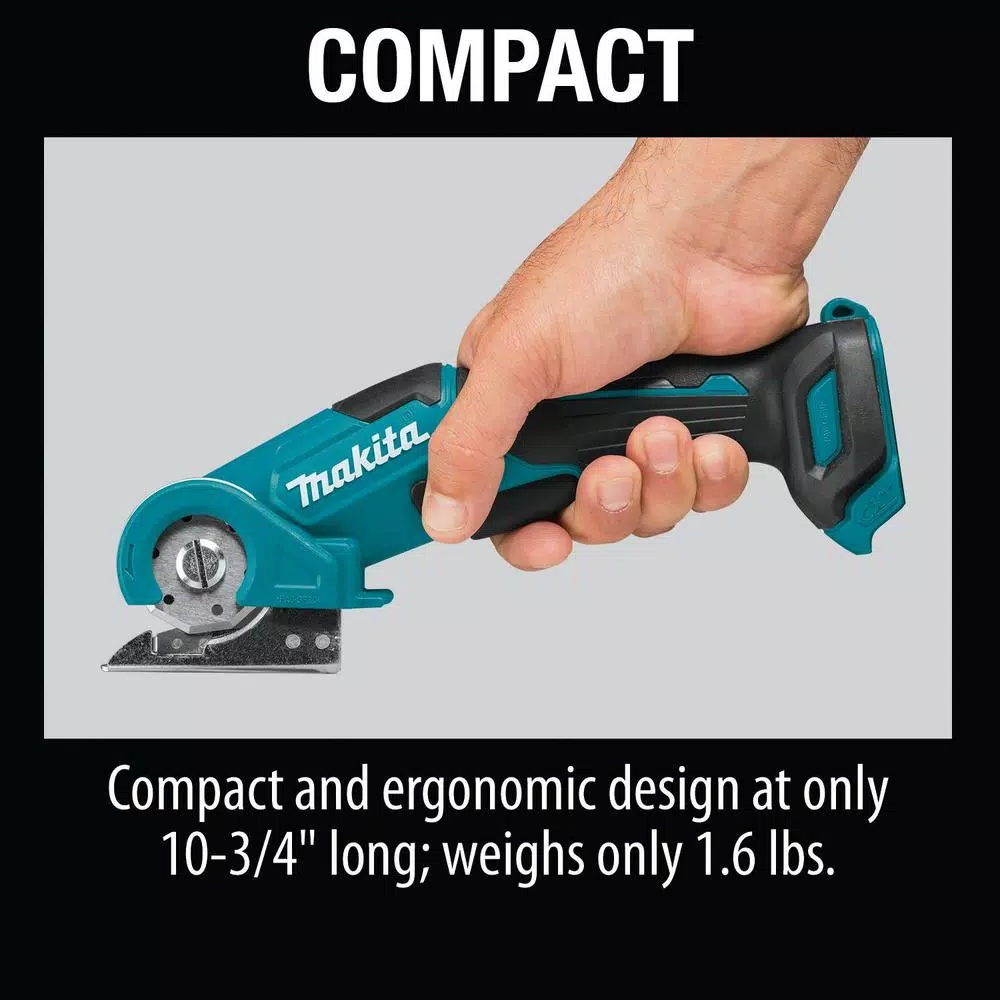 The 12-Volt max CXT Multi-Cutter is a cordless cutting solution for cardboard, carpet, leather, rubber, vinyl, and more. With 1/4 In. material cutting capacity, 300 RPM, and self-sharpening blade, the Multi-Cutter is engineered for maximum cutting efficiency. Convenience features include a compact and ergonomic design, with a built-on lock-on lever helps prevent the tool from accidentally engaging. It weighs only 1.6 lbs. with 12-Volt max CXT Lithium-Ion 2.0Ah battery (sold separately). For longer run time, 12-Volt max CXT cordless tools are also compatible with the 12-Volt max CXT Lithium-Ion 4.0Ah battery (BL1041B). 12-Volt max CXT Lithium-Ion batteries are engineered with a Battery Protection Circuit that protects against overloading, over-discharging and over-heating. Its part of the expanding 12-Volt max CXT series, combining performance with superior ergonomics in a compact size.