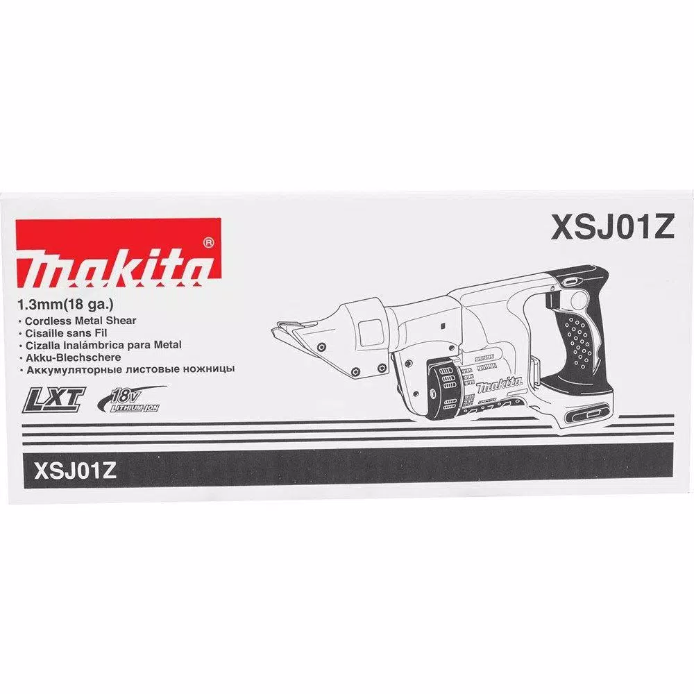 The Makita 18-Volt LXT Lithium-Ion Cordless 18-Gauge Straight Shear (model XSJ01Z, tool-only) combines high speed, compact size and less weight. The XSJ01Z has a Makita built 4-pole motor for faster cutting, yet it weighs just 5.3 lbs. (with battery, sold separately) for better control in cutting steel and stainless steel sheet metal. Itโs part of Makitaโs expanding 18-Volt Lithium-Ion series, the worldโs largest cordless tool line-up powered by an 18-Volt Lithium-Ion slide-style battery. Makita 18-Volt Lithium-Ion batteries have the fastest charge times in their categories, so they spend more time working and less time sitting on the charger.