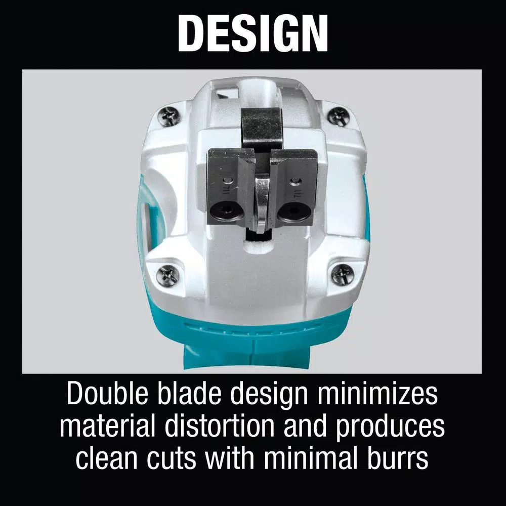 - High performance double blade design minimizes material distortion and produces clean cuts with minimal burrs