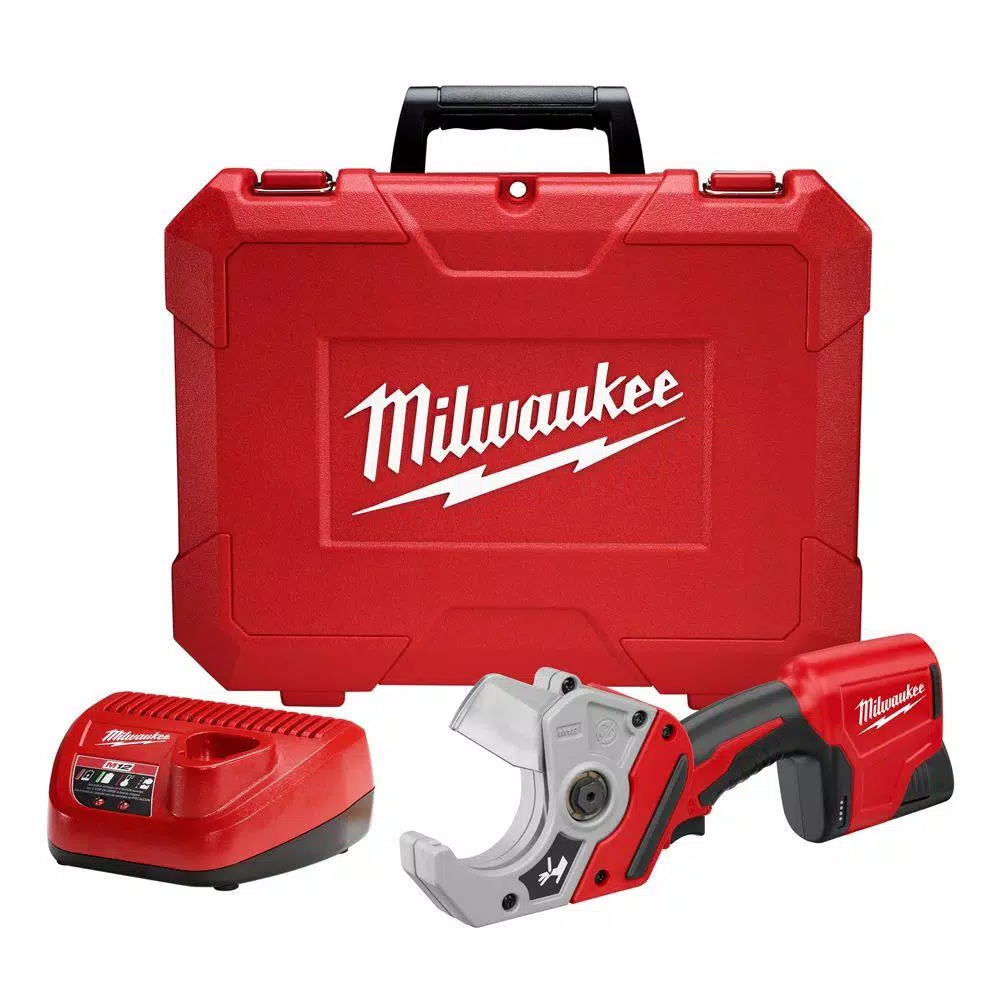 - Includes: (1) 2470-20 M12 cordless lithium-ion PVC shear, (1) 48-11-2401 M12 REDLITHIUM battery, (1) 48-59-2401 M12 lithium-ion battery charger and 1 carrying case