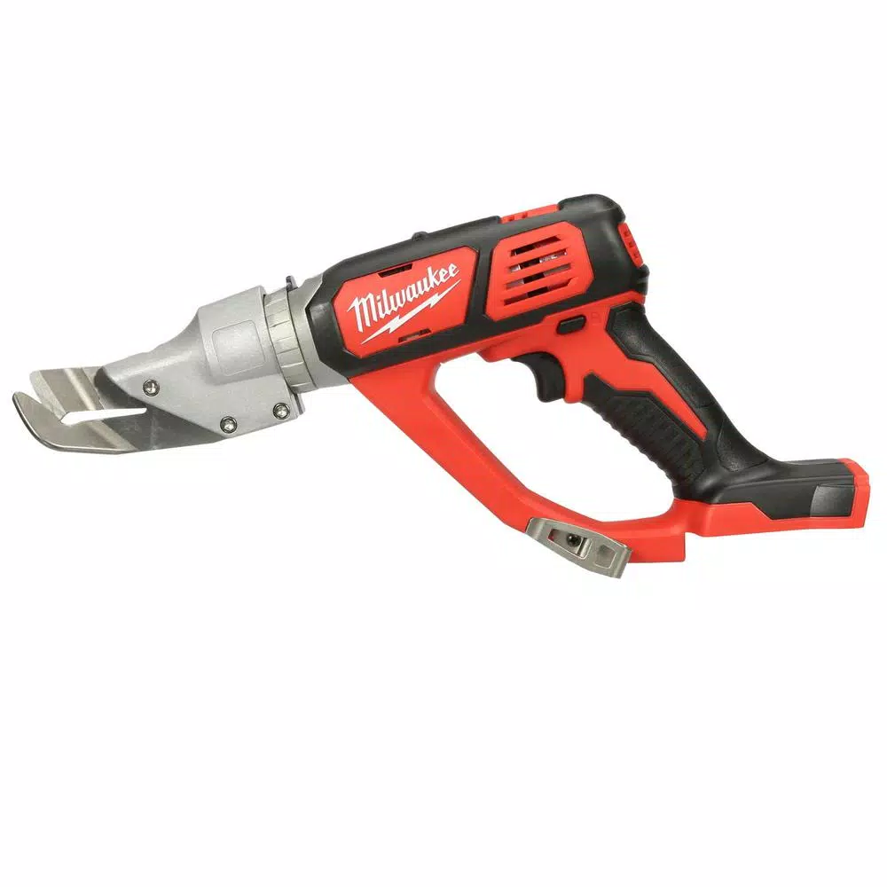 The MILWAUKEE M18 18 Gauge Single Cut Shear features a redesigned body and inline wrist design that maximizes control during use. The M18 18 Gauge Single Cut Shears offers an 18 gauge steel capacity and are able to perform curved cuts, providing them with the most versatility. These battery powered hears replace the need for hand snips, allowing users to get through more work in less time. These cordless shears feature a 360ยฐ rotating head and a variable speed trigger provide users with maximum control.